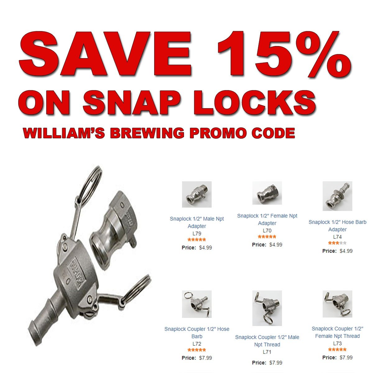 Promo Code Description: Save 15% On Williams Brewing SnapLock Fittings with WilliamsBrewing.com Promo Code